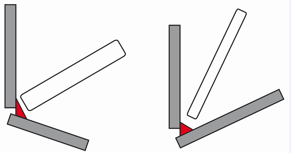 Die längliche Form des Fugenspatels wirkt wie eine Art Winkelmesser dadurch lässt sich ein einmal gewählter Winkel leicht einbehalten.